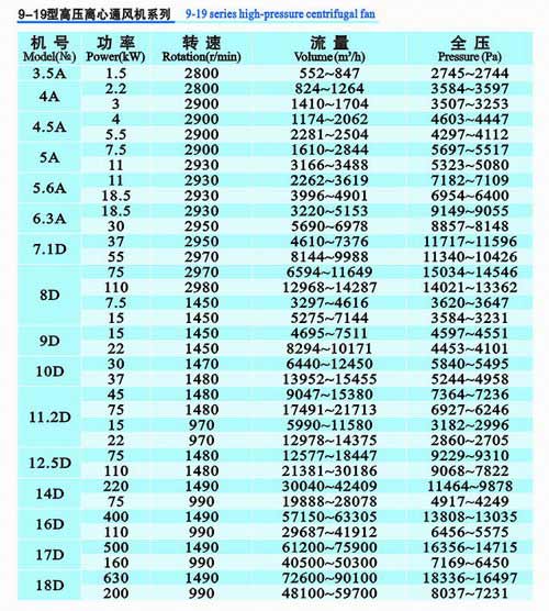 9-19系列高压高心通风机,是纸箱机械专用风机,也可用于锻冶炉及高压强制通风,广泛应用于输送物料,输送空气及无腐蚀性不自燃,不含粘性物质之气体,温度一般不超过50℃,超高不能超过80℃,介质中所含尘土及颗粒不大于150mg/m3。
